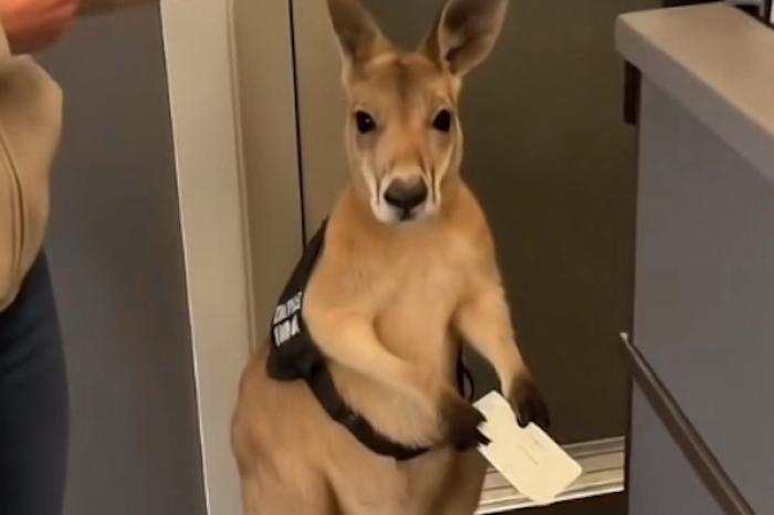 Un video que ha circulado masivamente en redes sociales como Facebook, Instagram, TikTok y X (antes Twitter) ha generado tanto ternura como controversia. En él aparece un pequeño canguro, aparentemente vestido con un chaleco de asistencia emocional, acompañado de un boleto de avión entre sus patas, mientras observa a la cámara con una expresión dulce que conmovió a miles de espectadores.