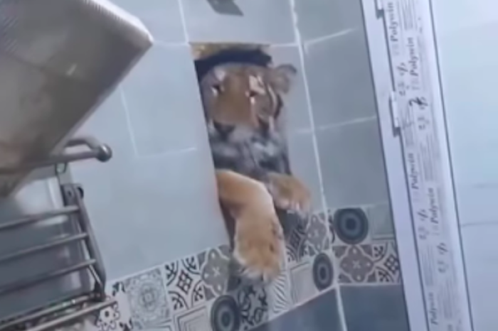De acuerdo con la grabación, el sujeto ingresó a su baño como de costumbre cuando escuchó ruidos extraños. Al revisar un pequeño agujero en la pared, vio cómo unas garras anaranjadas emergían lentamente hasta revelar la imponente figura del felino.