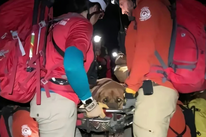Un perro, visiblemente con sobrepeso, se convirtió en el protagonista involuntario de un operativo de rescate después de que una caminata recreativa se transformara en una misión imposible para él.