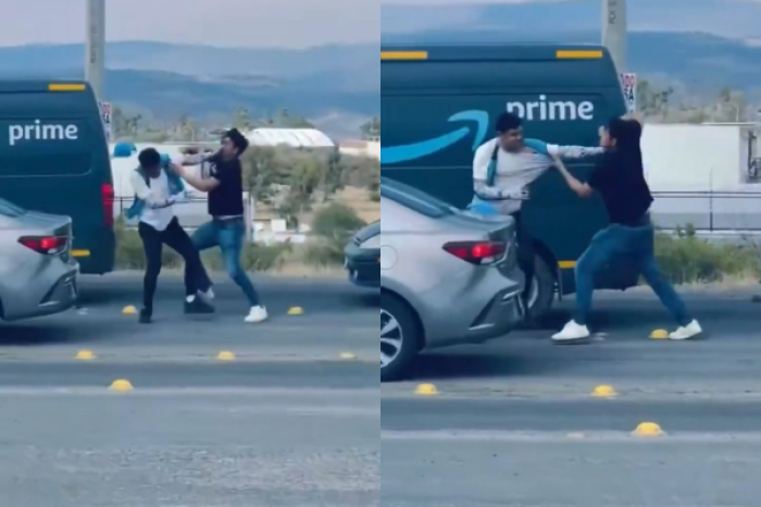 De acuerdo con los reportes e imágenes que circulan en redes sociales, la confrontación se originó aparentemente por un incidente vial durante la jornada laboral del trabajador de paquetería, quien descendió de su unidad para encarar de manera acalorada al otro conductor en plena vía pública ante la mirada de las personas que transitaban por la zona.